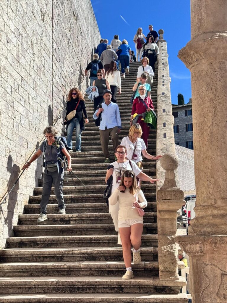 Podczas zwiedzania bazyliki św. Franciszka zachwyciły nas freski, także te opowiadające o jego życiu i misji — to właśnie w tej świątyni znajduje się ich największe skupisko na świecie. Nie zabrakło również odwiedzin w bazylice św. Klary, gdzie spoczywa uczennica i duchowa siostra św. Franciszka.